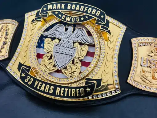 Honor a service career the right way—with a championship belt that looks and feels like an actual legacy award.