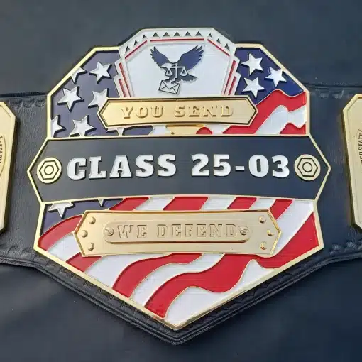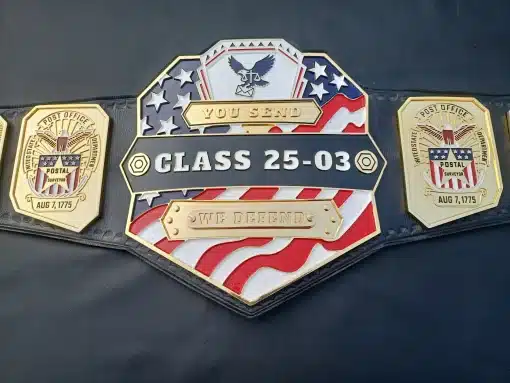 A powerful recognition championship belt designed to honor service, duty, and legacy. Created for postal departments, government agencies, and official service milestones, this fully customizable title belt transforms recognition into a lasting symbol of pride, commitment, and achievement.